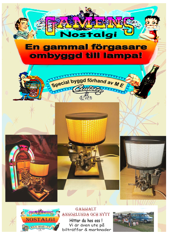 Gamens Nostalgi är där med ombyggda radio apparater och spelande brödrost med Bluetooth och Mp3 samt specialbyggda Led lampor som Telefånlampan, damsugarlampan och även andra nostalgi prylar som ni måste bara ha...